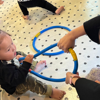 引っ張る動きが分からないお友達もみよう見真似で一緒にホースの輪を掴んでました✨