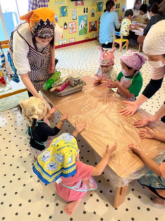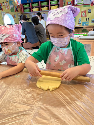 クッキーを作る前から、「いつクッキーつくるの?」「マスクもってきたよ!」と話したりと楽しみにしているお友達🥰